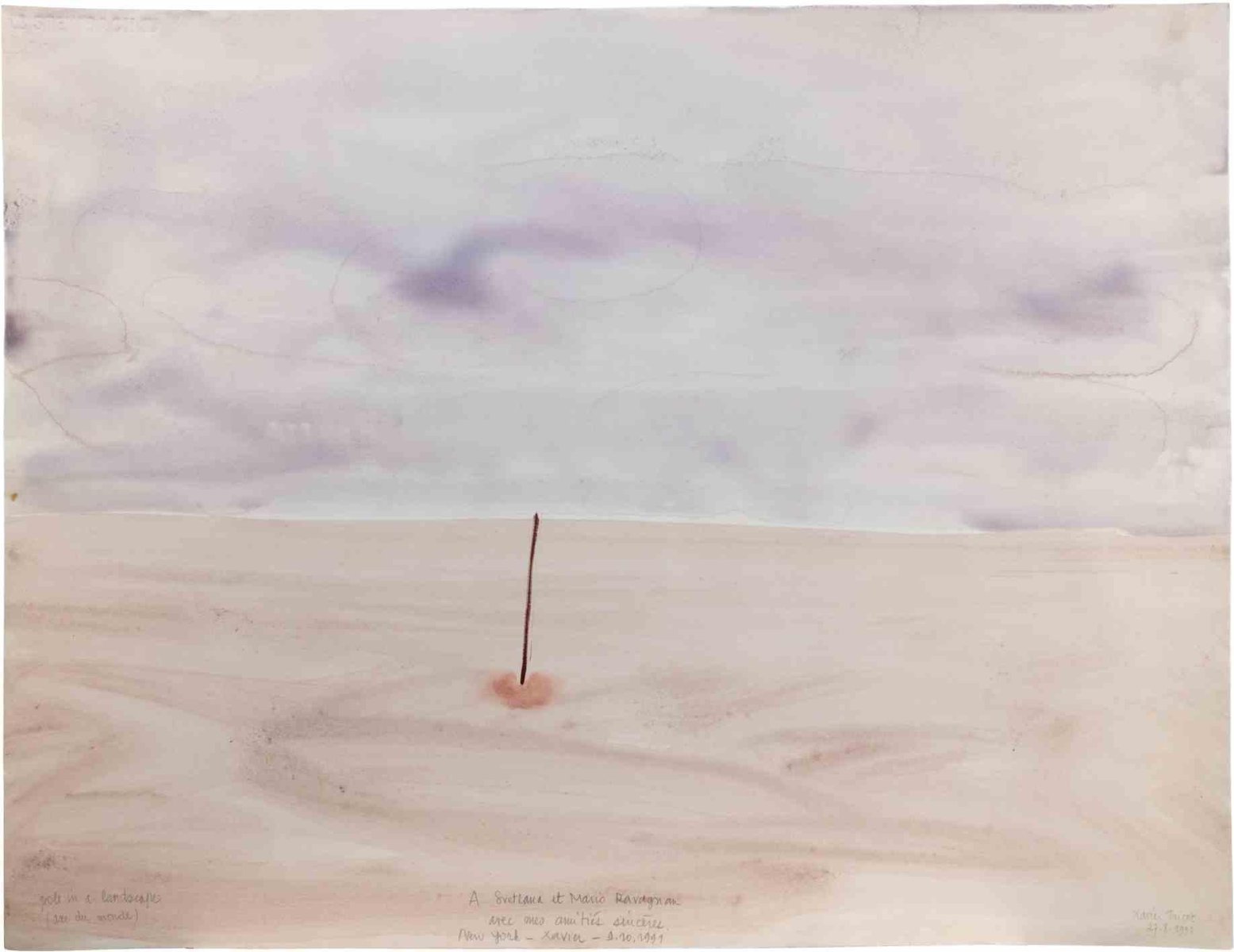 Xavier Tricot, Pole in a Landscape, Mixed Media on Paper, 1991